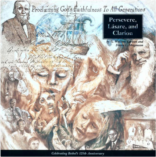 There had been a chapter on education in the Baptist General Conference in the Centenary History of that denomination (1952) by Adolf Olson, who had previously collaborated with his son Virgil on a brief 75th anniversary history of Bethel Seminary alone (1946). But it wasn’t until 1997 that Bethel College and Seminary got anything like a full accounting of its institutional history. For the institution’s 125th anniversary celebration, history professors G.W. Carlson and Diana Magnuson collaborated on a historical exhibit that became an impressive booklet, Persevere, Läsare, Clarion.