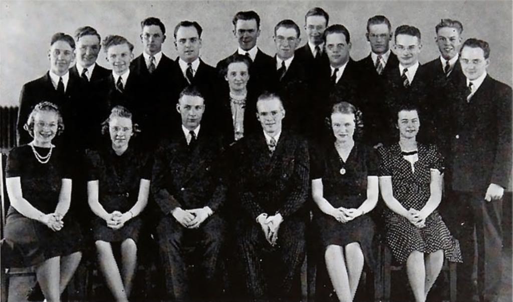 The only woman not seated in this 1940 yearbook photo of seminary juniors, Ruff stands behind Carl Lundquist, who would go on to become Bethel’s longest-serving president. You can read much more about Ruff in this 2022 blog post I wrote for Patheos. All images from Bethel Digital Library