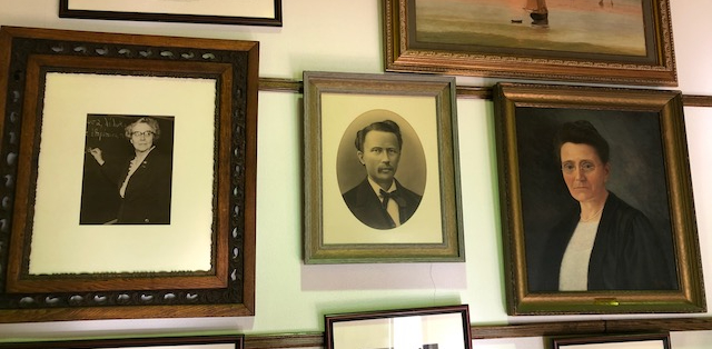 In the main archives room itself, the extensive collection of historical paraphernalia includes the images of at least four women from the history of Bethel. First, the two flanking a portrait of a young John Alexis Edgren: