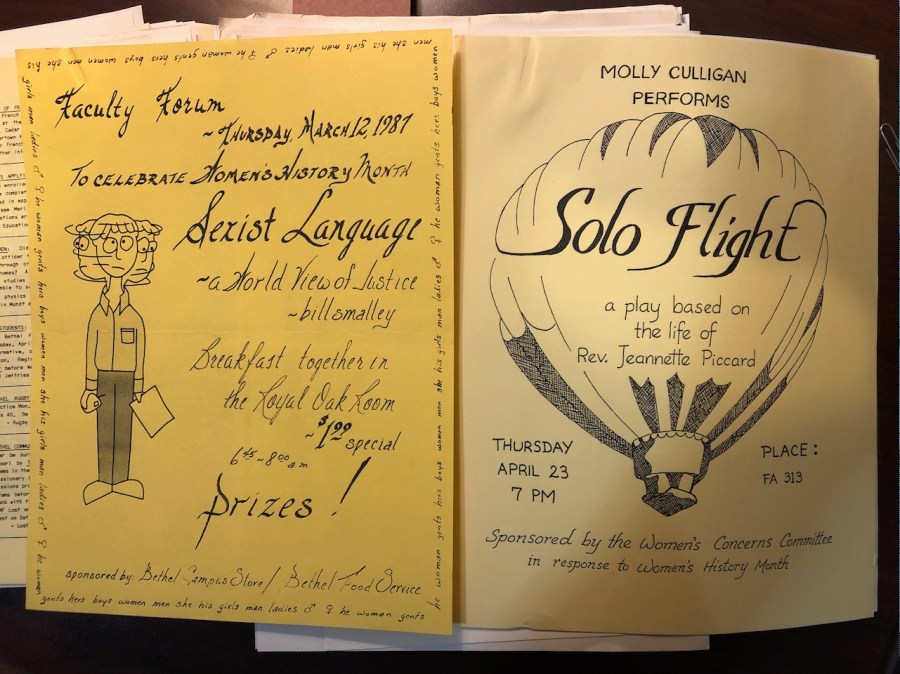 The beginning of March “means more than approaching midterms and spring break,” The Clarion informed Bethel students that month in 1987; “it also means National Women’s History Month.” Both “a source of inspiration for women activists and achievers” and a way to help “men to expand their own appreciation for and expectations of the lives and work of women around them,” Women’s History Month (WHM) was a fixture at Bethel throughout the late Eighties, Nineties, and early Aughts.