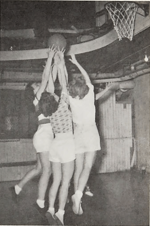 But I’ll instead show you the photos from the following year’s Spire, which includes the typical team shot (with Bill Adam, who coached men and women) above four individual poses and a trophy earned in a 12-7 victory over the Twin City Church League all-stars (according to the March 1938 issue of The Clarion). Until the early 1970s, women’s basketball generally followed rules laid out around the turn of the century by Senda Berenson of Smith College, which limited dribbling and physical contact and restricted players to one section of the court. “Unless a game as exciting as basketball is carefully guided by such rules as will eliminate roughness,” wrote Berenson in 1903, “the great desire to win and the excitement of the game will make our women do sadly unwomanly things.”