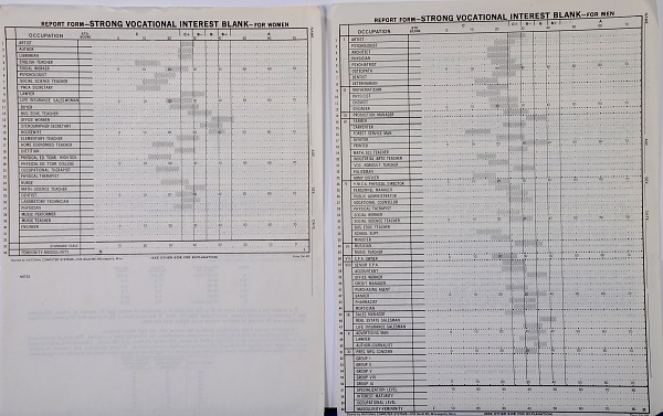 Still, home loomed as large as church in the vocational imaginations of most young women at Bethel in the 1950s. When Nelson and other faculty and staff conducted the College’s first self-study in 1951-52, they had seventy-eight women students and seventy-nine men complete the Strong Vocational Interest Blank (sample below). Overall, those Bethel women rated higher than the national average on that inventory’s “Femininity-Masculinity Scale,” with 72% of them scoring an A rating for housewife. The highest scoring profession for the women respondents was office worker (51%), while jobs like author, lawyer, and physician barely registered; chemist and physicist weren’t even options (as they were on the men’s form).10 It was an era, lamented Smith College graduate Betty Friedan, when “more American women than ever before were going to college—but fewer of them were going on from college to become physicists, philosophers, poets, doctors, lawyers, stateswomen, social pioneers, even college professors.”11