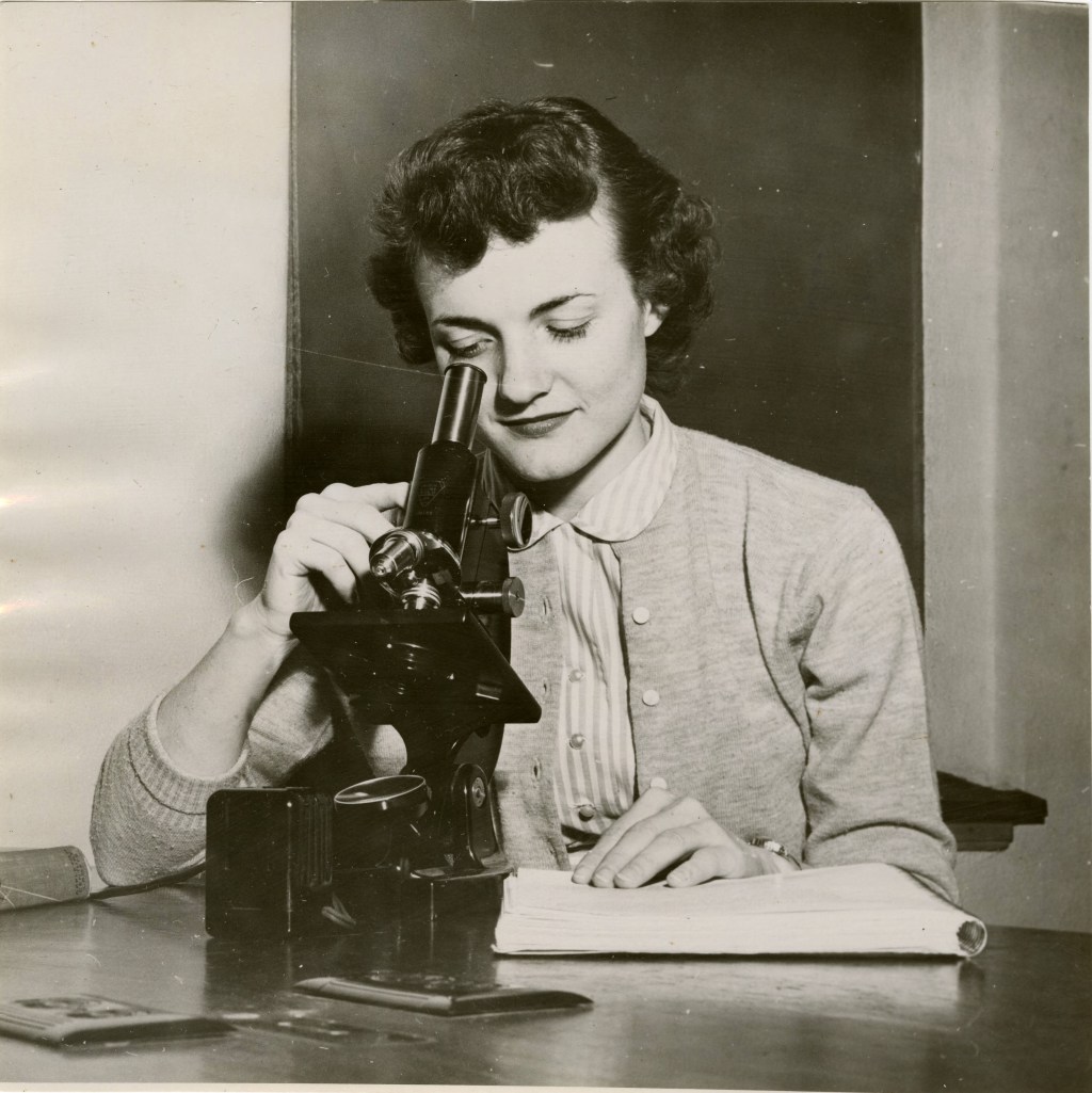 In 1957 Carol Anderson thought that the key traits of an ideal girl were not unique to women, since they were “essentially Christian characteristics” that applied equally to men. Nevertheless, she advised BWA members that “simply knowing how to cook or keep house well” would make them “far superior to the many girls whose only accomplishment is ‘knowing how to make themselves attractive.'”5 So was she at college to attract a husband and learn to keep house for him?, one listener surely asked herself. What if she aspired to become a research scientist like Anderson’s husband Elving, a geneticist who had helped to found Bethel’s biology program? After all, that year’s academic catalog promised to introduce the Bethel student “to a wide range of vocational possibilities, including some areas that may be new to him” — and, presumably, to her.6